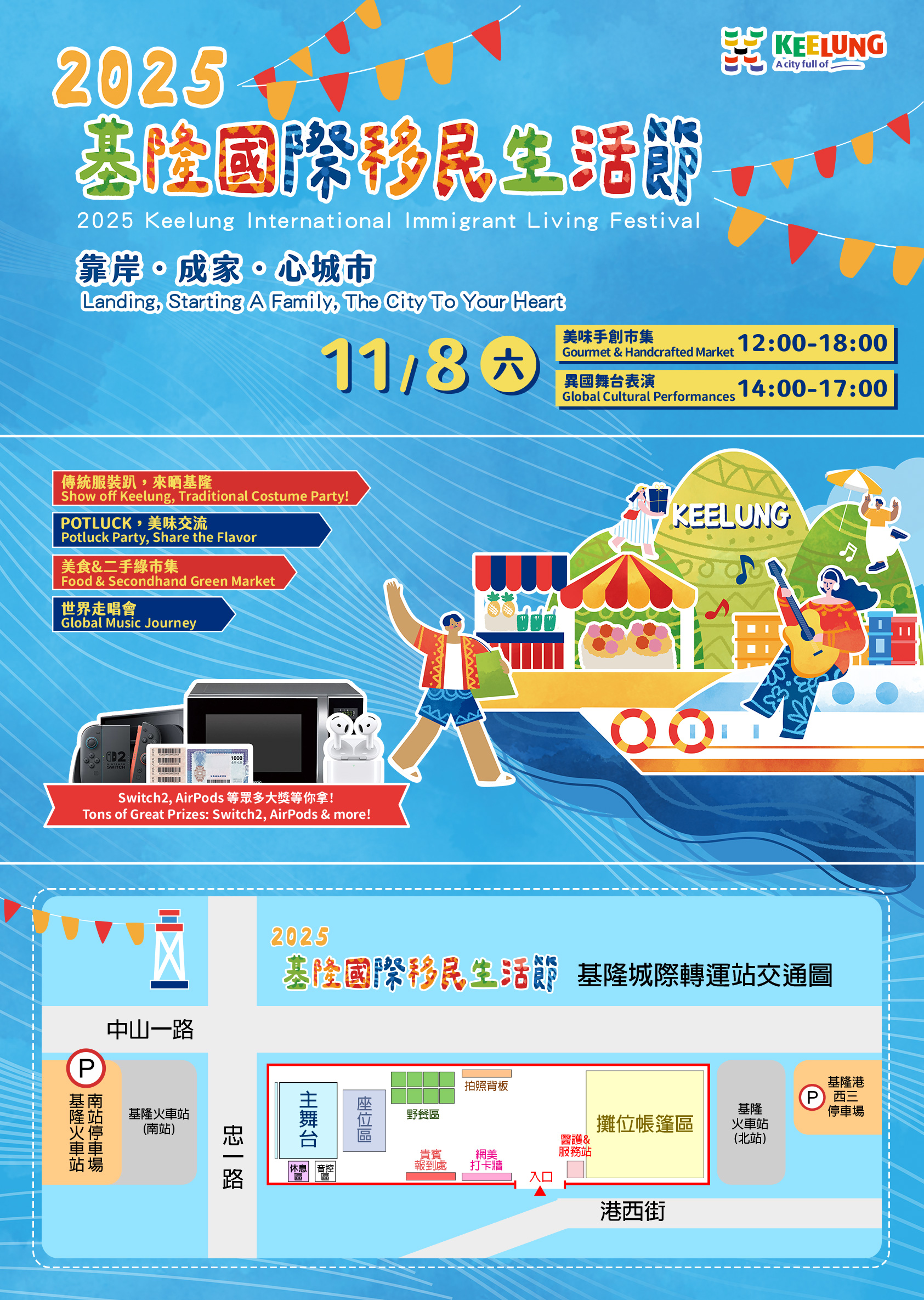 - 標題:「靠岸.成家.心城市」—2025基隆國際移民生活節, 11/8串起城市共同記憶。